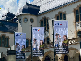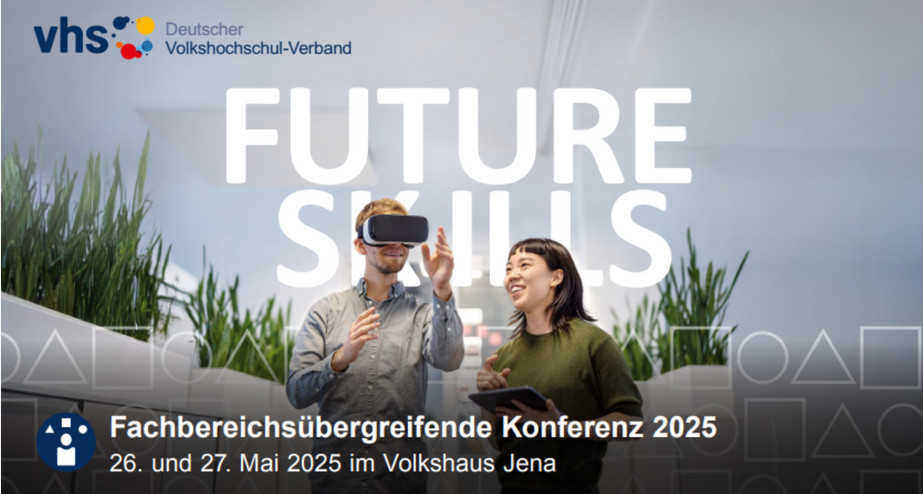 Dass die immer stärker verbreitete Nutzung digitaler Technologien vielfältige Auswirkungen auf gesellschaftliche Diskurse und somit auch auf Lernprozesse und Bildungseinrichtungen hat, ist unbestritten. Hier einen bundesweiten Austausch-, Informations- und Entwicklungsraum für Volkshochschulen (vhs) zu schaffen, war das Anliegen des Deutschen Volkshochschul-Verbands (DVV) bei der Durchführung der Fachbereichsübergreifenden Konferenz (FüK) zum Thema „Future Skills“ am 26./27. Mai 2025 im Volkshaus Jena. Gut 430 Teilnehmende aus ganz Deutschland folgten der Einladung, um die zukunftsrelevanten Kompetenzen in allen Fachbereichen und Funktionen von vhs zu stärken. Moderiert wurde die FüK von Sascha Rex, Leiter der Stabsstelle Grundsatz und Verbandsentwicklung im DVV. Durch die enge Kooperation mit der Nationalen Koordinierungsstelle der Europäischen Agenda Erwachsenenbildung in der Nationalen Agentur beim Bundesinstitut für Berufsbildung (NA beim BiBB), dem Thüringer Volkshochschulverband und der vhs Jena im Rahmen der Veranstaltungsplanung und -durchführung wurde deutlich, dass auch Vernetzung eine wichtige Zukunftskompetenz darstellt.